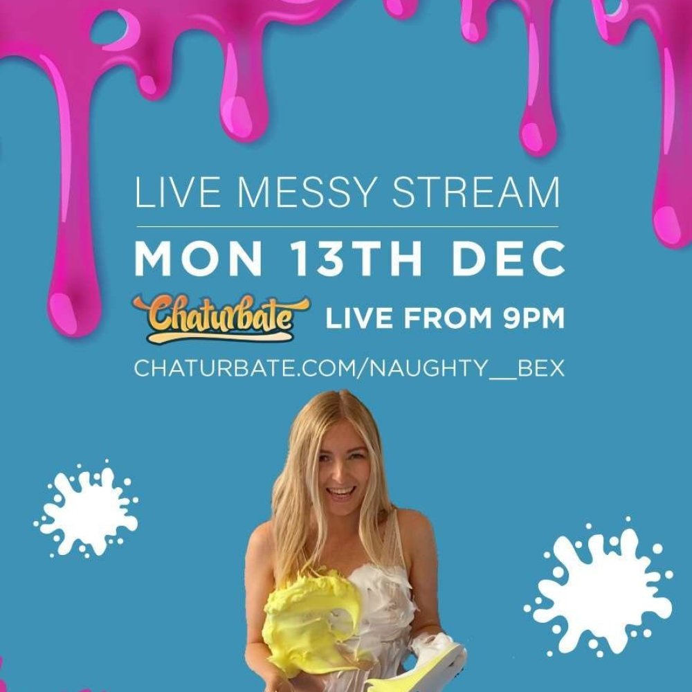 9pm UK time Bex will be getting gunged and pied live as one of her fans turns 50 at midnight uk time. Should be fun